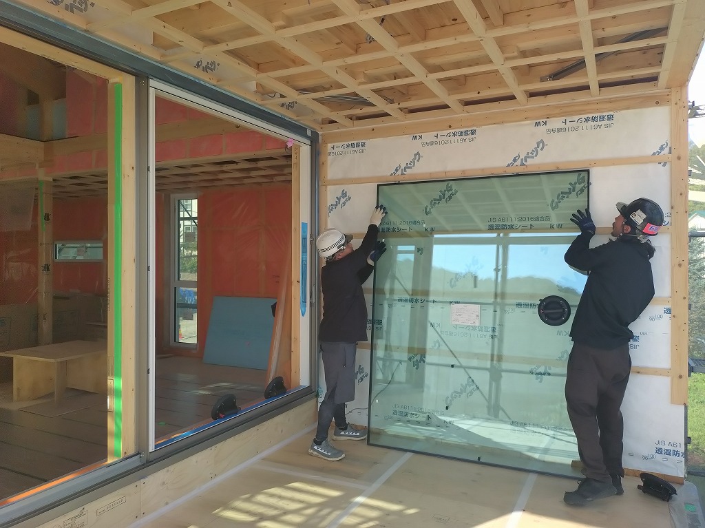 大きなサッシですが、サッシ枠自体は軽いので、テキパキと設置する事ができました。