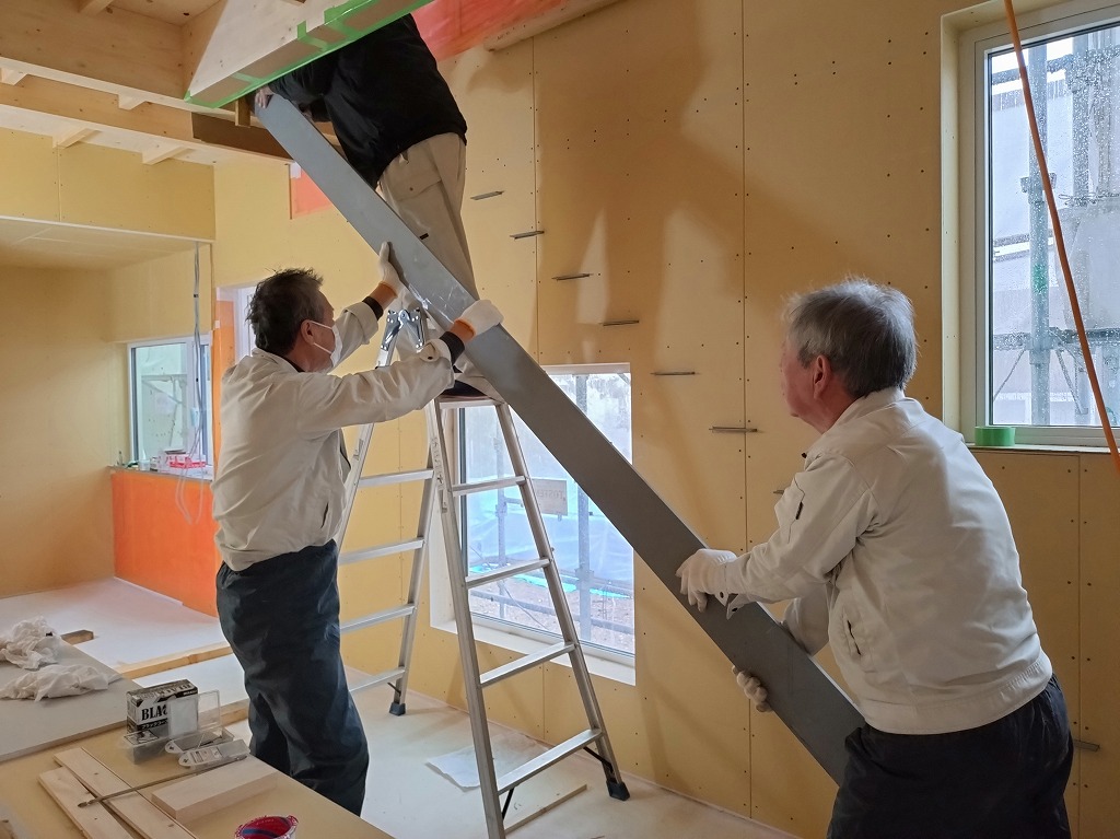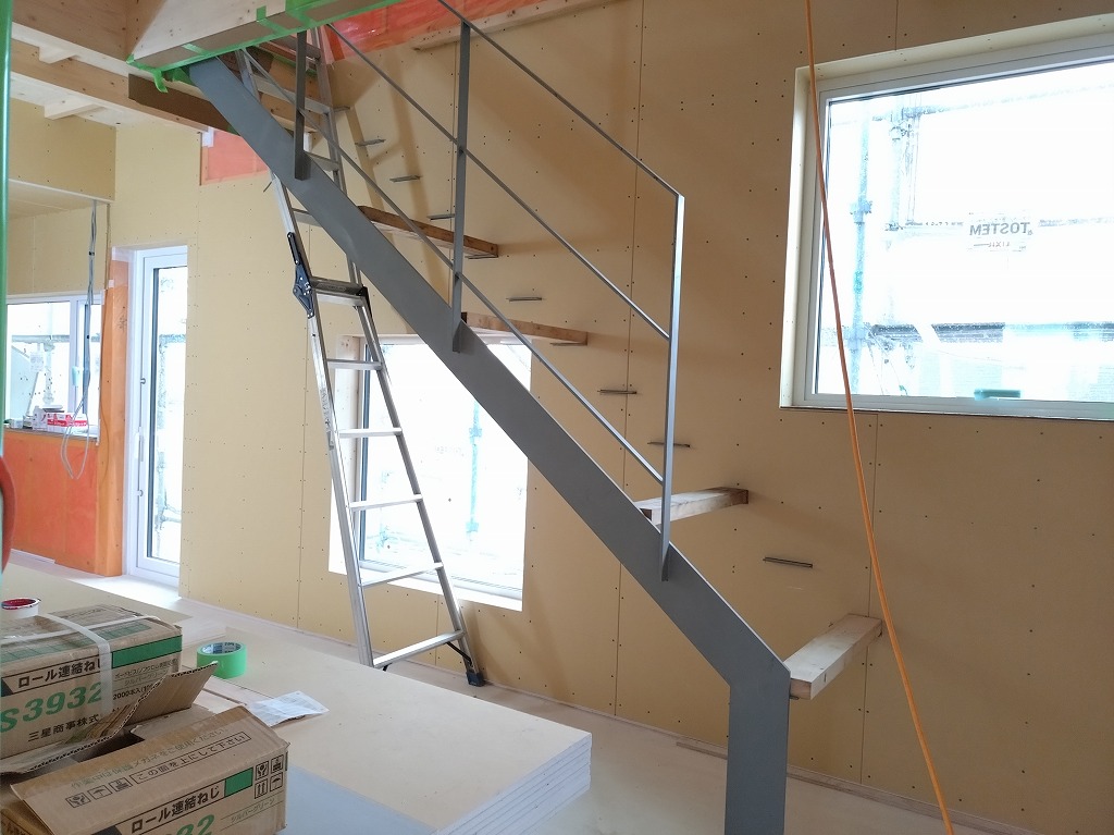 「富谷洋介建築設計」様の設計・監理の札幌市中央区S様邸では、鉄骨階段の取り付けを行いました。