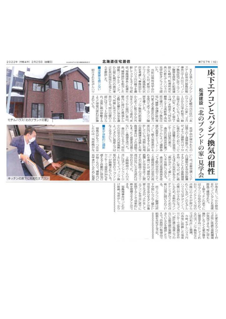 2022.3.10 北海道住宅通信に「北のブランドの家」見学会が掲載されました