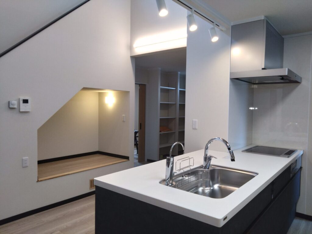 キッチンなどの設備機器を取付け、照明も取付けが終わりました。