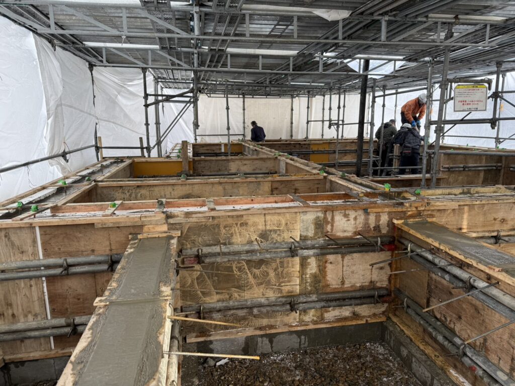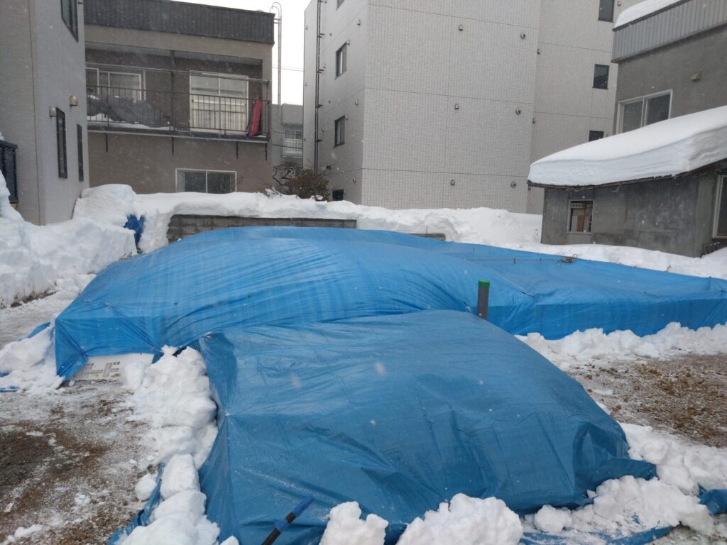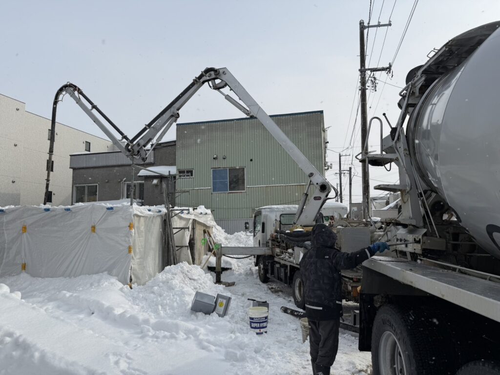 ベースコンクリートを打設して年末年始を迎え、年明け始業開始から大雪に見舞われました。