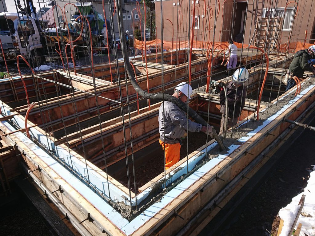 江別市 S様邸【設計監理:山之内建築研究所様】 基礎の立ち上がりコンクリート打設