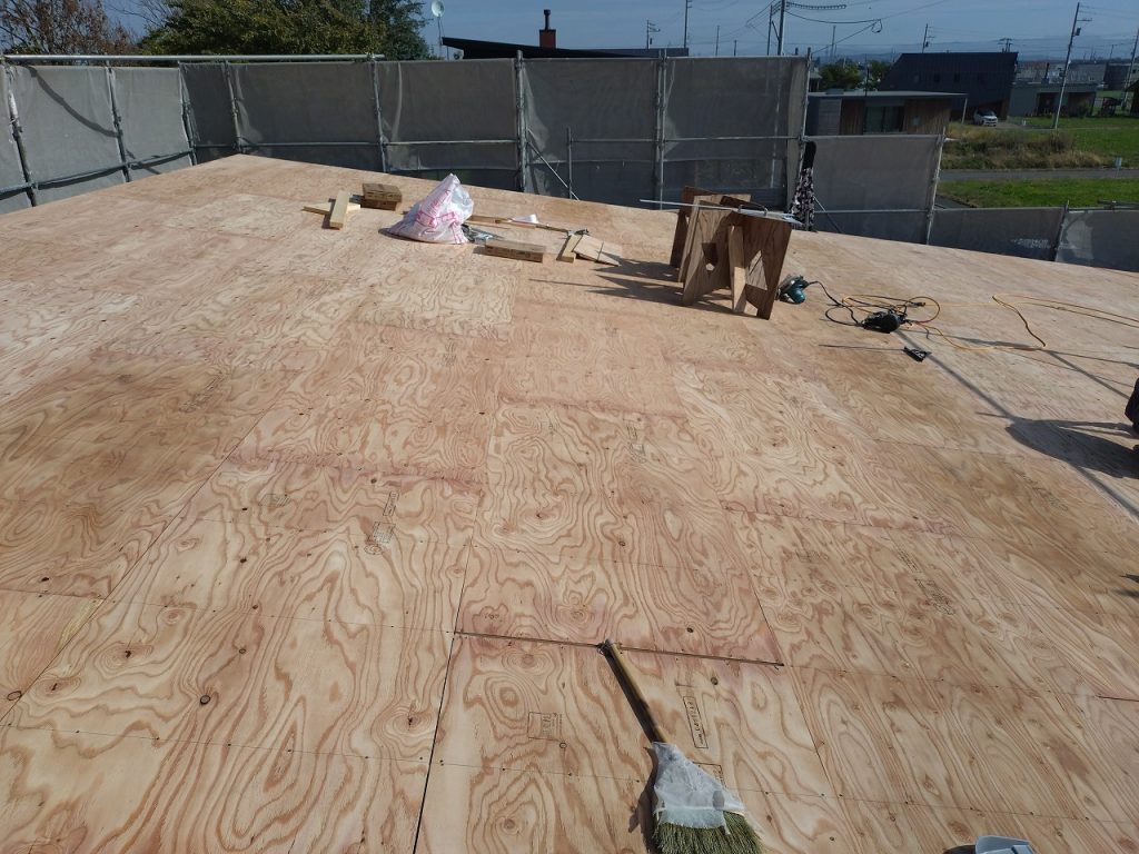 南幌町 I様邸【設計監理:エスエーデザインオフィス様】野地合板張りと面材耐力壁の造作