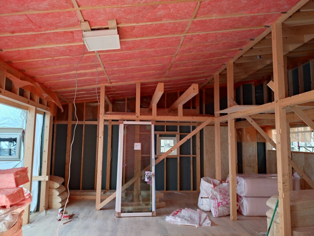 南幌町 I様邸【設計監理:エスエーデザインオフィス様】天井・壁断熱材の施工と設備工事