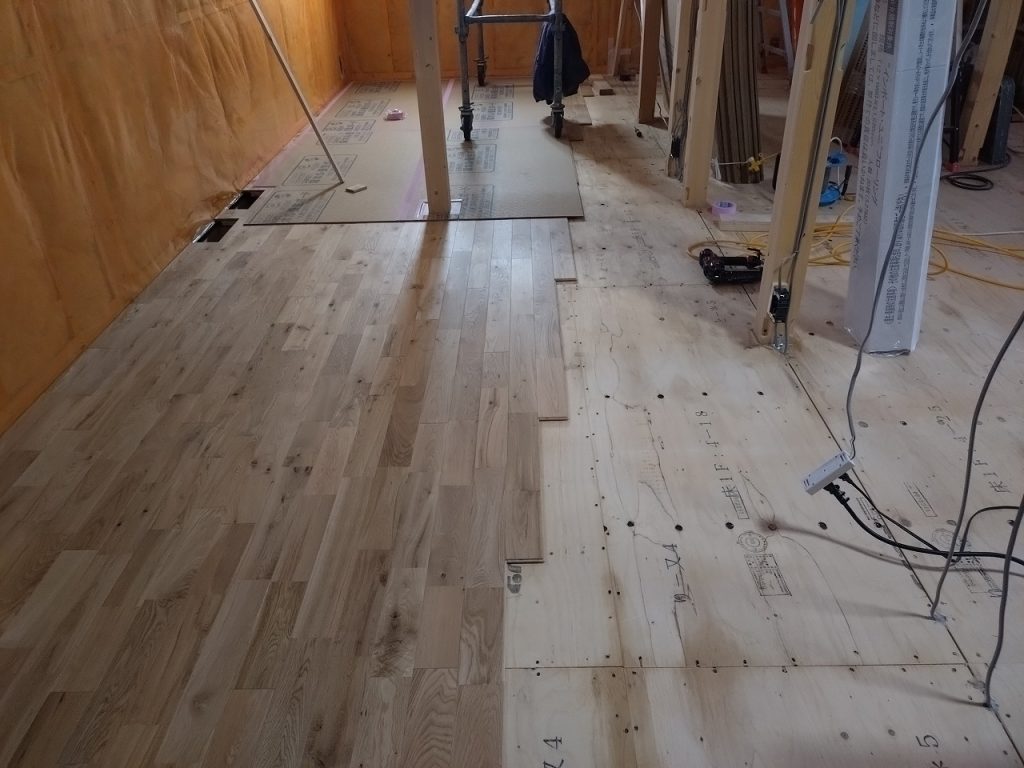 南幌町 I様邸【設計監理:エスエーデザインオフィス様】フローリング張りと構造躯体検査