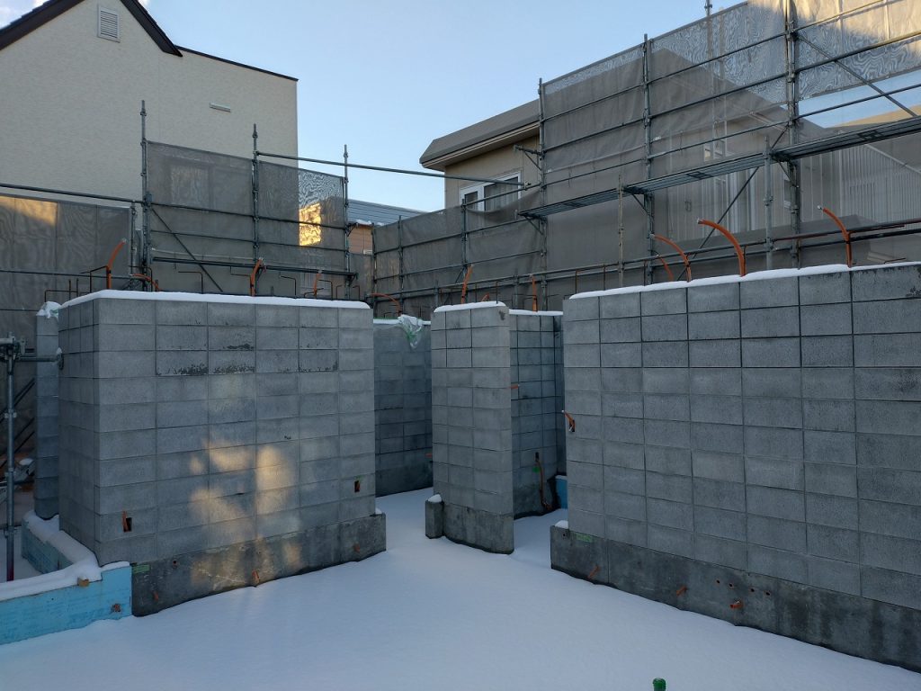 札幌市厚別区 I様邸【設計監理:山之内建築研究所様】ブロック積み完了と外部足場組