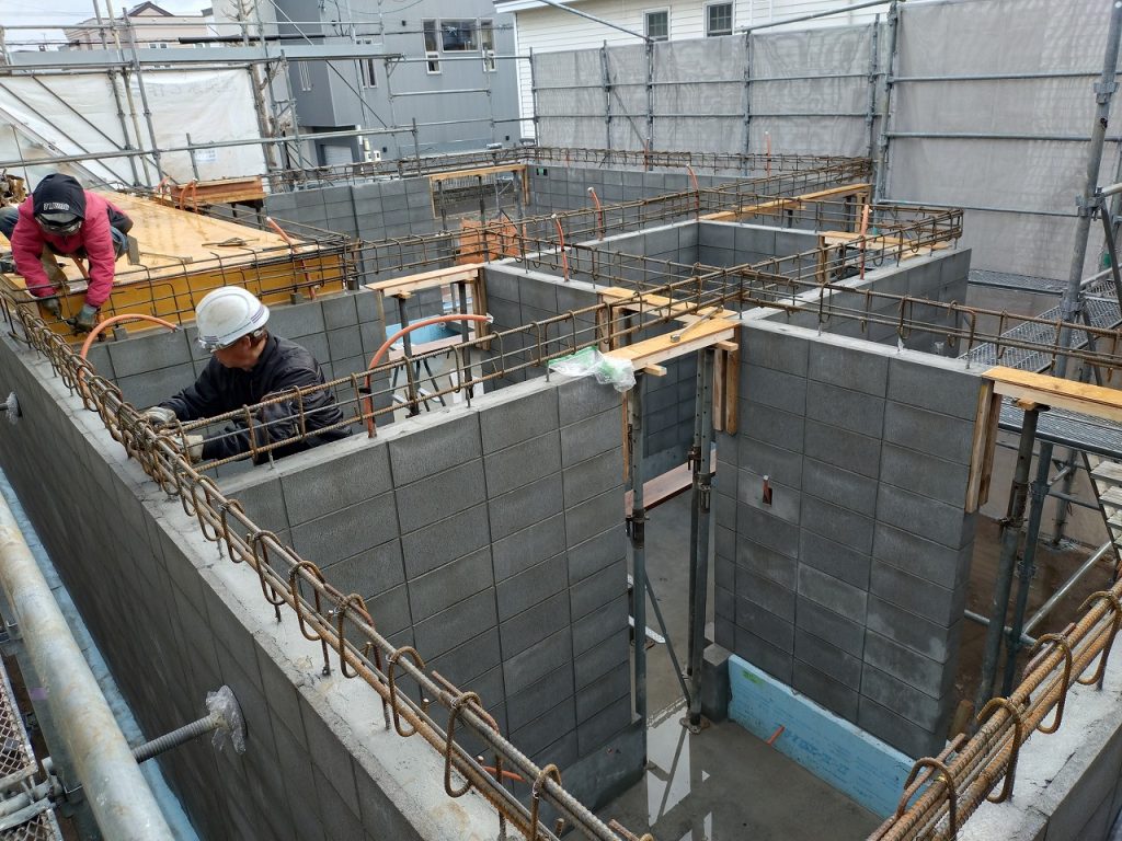 札幌市厚別区 I様邸【設計監理:山之内建築研究所様】引き続きブロック積みを行っています。