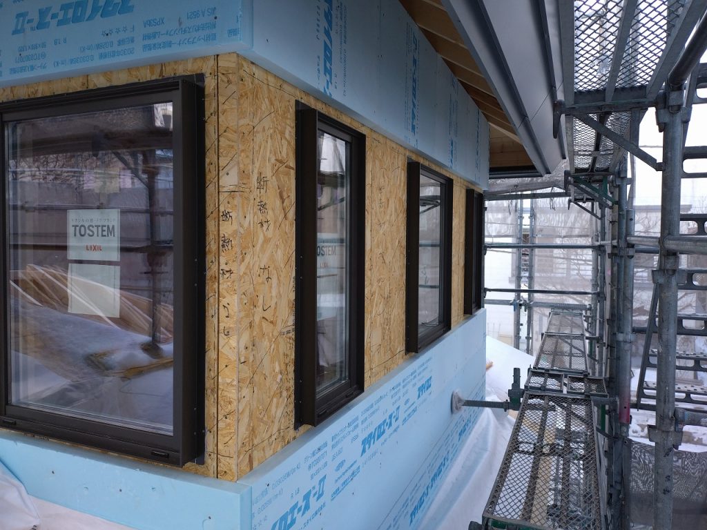 札幌市西区 現場監督の自邸 気密工事状況とリビングサッシ