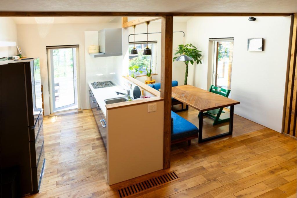 屋内外の空気の温度差を活用し、自然の力だけで室内の空気をめぐらせる「パッシブ換気床下暖房システム」を採用しているエコットハウス(松浦建設)。