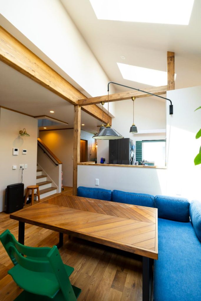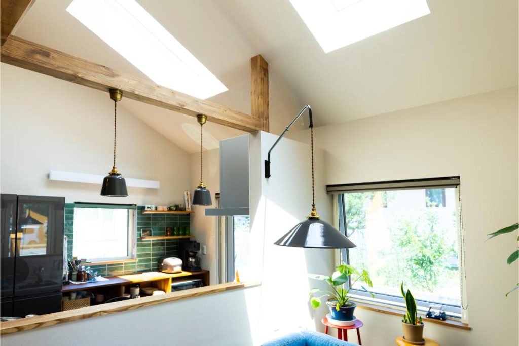 松浦社長 ご実家とコミュニケーションが取りやすい北東側のダイニングを明るい空間にするため、勾配屋根に天窓を付けました。2階の壁につながる通気や防水を踏まえた屋根断熱を施す設計に苦労したので、とても印象に残っています。